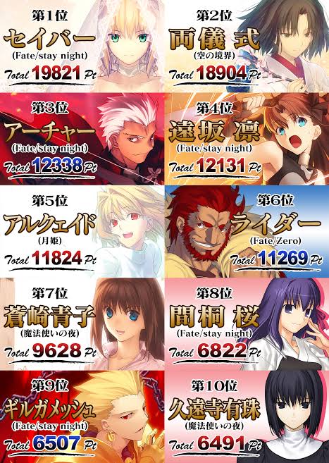 今投票したらどんなもんかな。てかギルや言峰は入ってないんやな