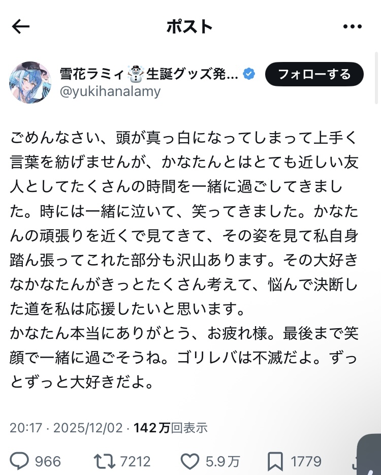 12/27 天音かなた 卒業 165万人